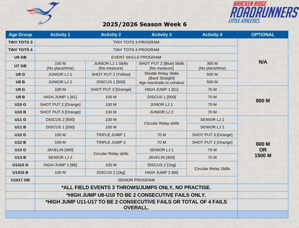 🏃♀️ Week 6 Meet – Friday 10th of October🏃♂️ | Bracken Ridge Little Athletics
