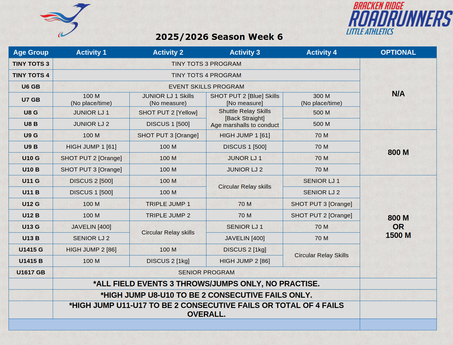 🏃♀️ Week 6 Meet – Friday 10th of October🏃♂️ | Bracken Ridge Little Athletics