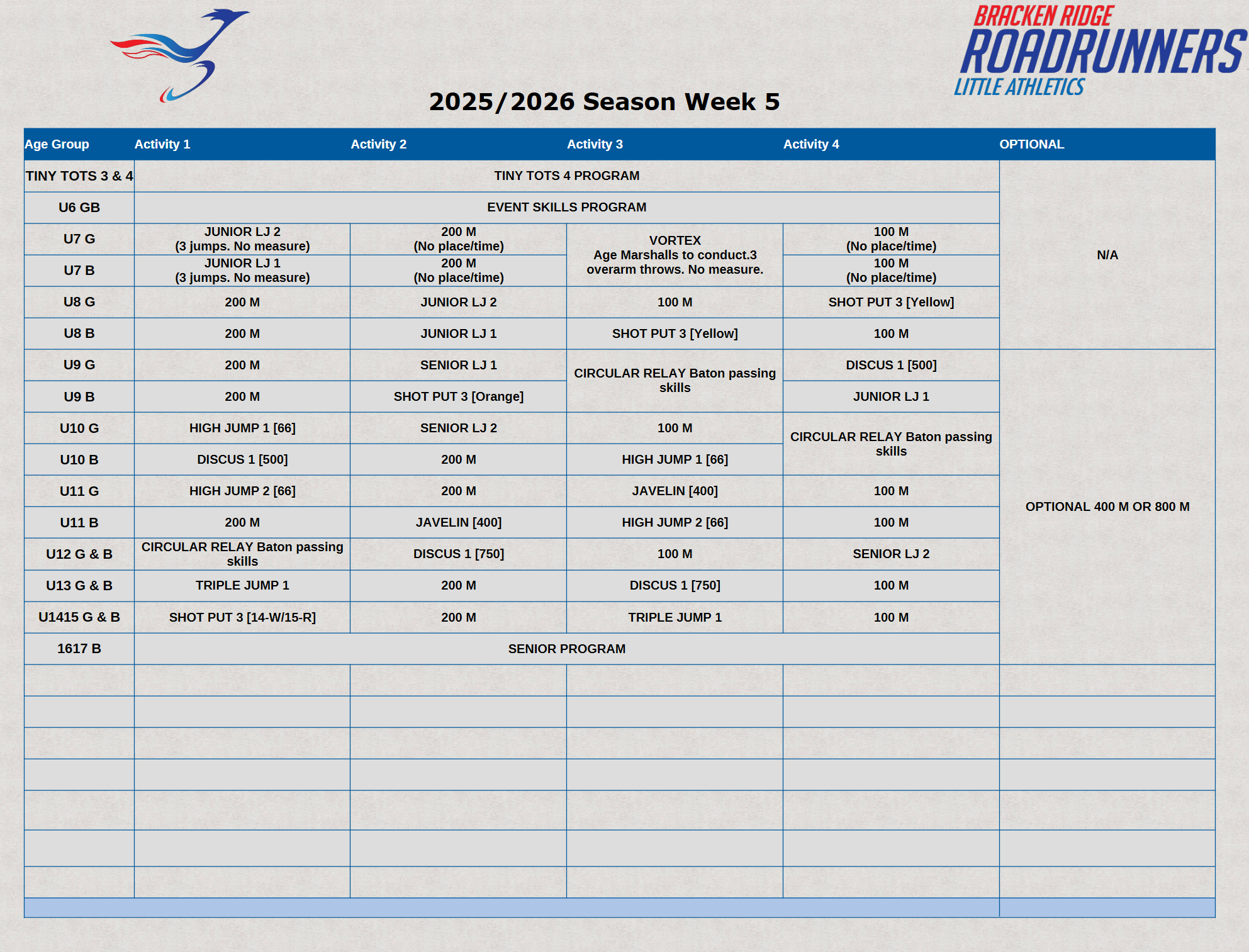 We’re back this Friday night for Week 5 of our season at McPherson Park, Bracken Ridge. After an exciting hurdles week, this week will be a general program night with a balanced mix of sprints, throws, jumps, and skills activities for all age groups.