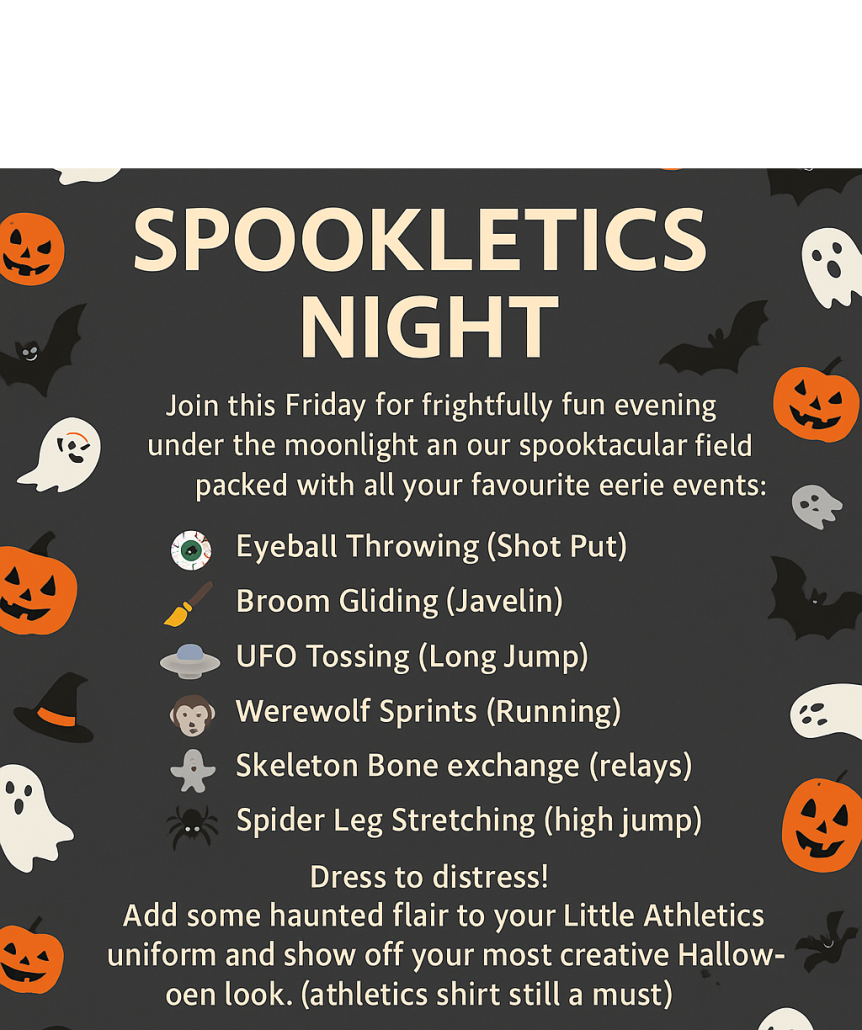 🎃 SPOOKLETICS NIGHT – This Friday! 👻 – Friday 31st October | Bracken Ridge Little Athletics