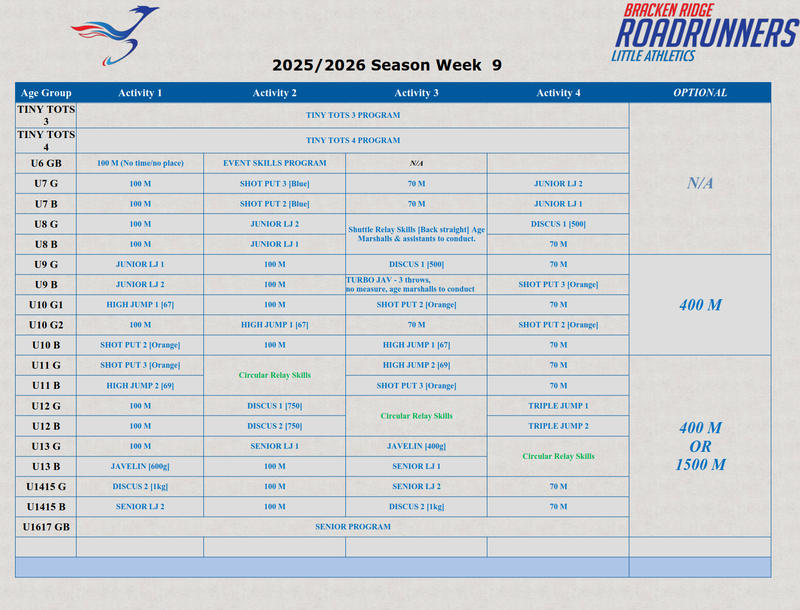 - Wear your full Bracken Ridge uniform. If a friend is coming, let them know what age group they’ll compete in.